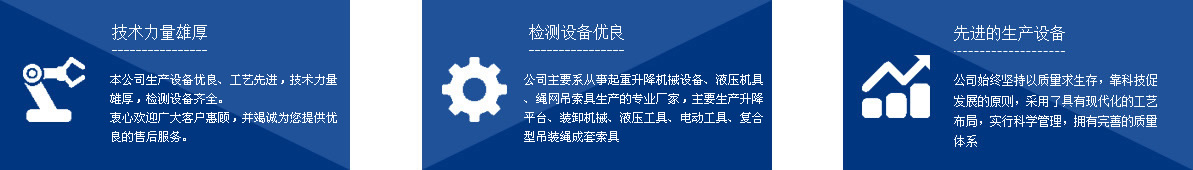 泰州市如意機(jī)械設(shè)備有限公司,座落在中國(guó)海軍誕生地江蘇泰州市,緊連328國(guó)道,東有鐵路相連,同時(shí)有滬寧、寧通高速公路相交,地理位置十分優(yōu)越,自然環(huán)境得天獨(dú)厚。 本公司系從事起重升降機(jī)械設(shè)備、液壓機(jī)具、繩網(wǎng)吊索具生產(chǎn)的專(zhuān)業(yè)廠(chǎng)家,主要生產(chǎn)千斤頂、液壓拉馬、軸承加熱器、升降平臺(tái)、裝卸機(jī)械、液壓工具、電動(dòng)工具、復(fù)合型吊裝繩成套索具、高強(qiáng)纖維柔性吊裝帶、起重鏈條成套索具、橫梁吊具、注塑繩、軟梯、安全帶、安全網(wǎng)等幾大系列、上百種規(guī)格的產(chǎn)品,廣泛應(yīng)用于電力、油田、大型鋼廠(chǎng)、機(jī)電、化工、航空、冶金、機(jī)械、鐵道、造紙、港口、建筑等領(lǐng)域。 本公司生產(chǎn)設(shè)備優(yōu)良、工藝先進(jìn),技術(shù)力量雄厚,檢測(cè)設(shè)備齊全,其中升降平臺(tái)、千斤頂、吊具、加力扳手、液壓矩扳手經(jīng)泰州質(zhì)量技術(shù)監(jiān)督局監(jiān)督檢驗(yàn) ...[點(diǎn)擊詳情]